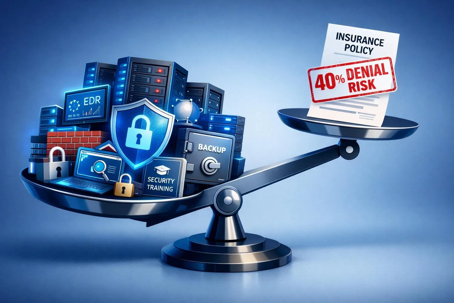 According to research from multiple sources, over 40% of cyber insurance claims were denied in 2024. The most common reasons were missing MFA, inadequate endpoint protection, and failure to maintain documented security controls.