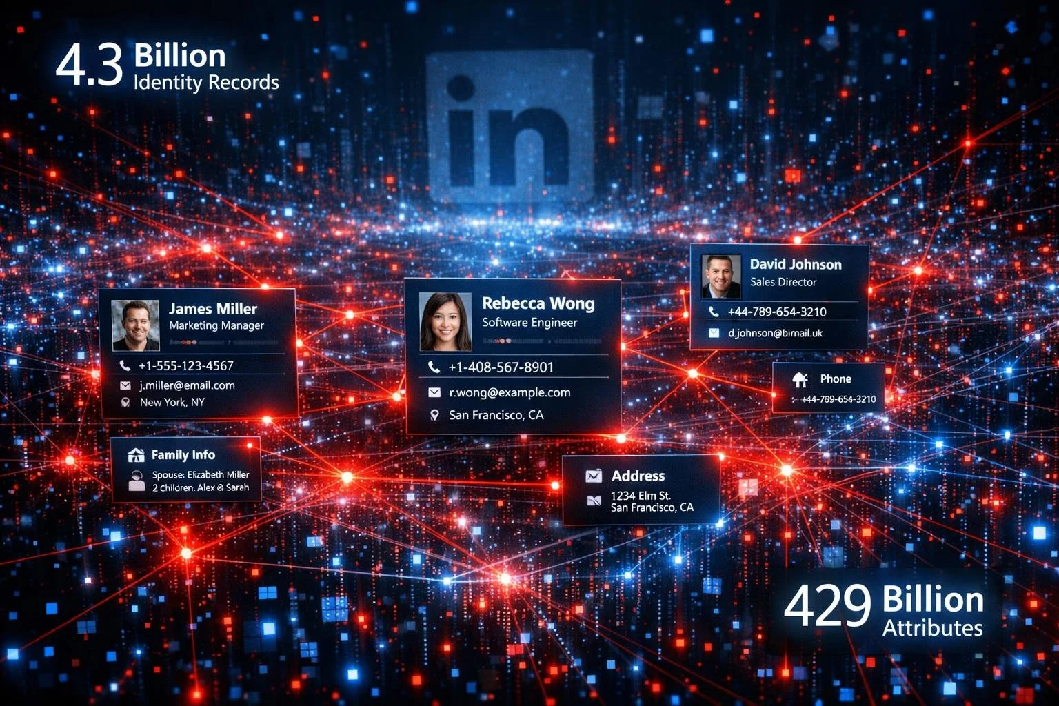 Your LinkedIn profile is already out there. 4.3 billion professional records were exposed in November 2025 alone, enriched with 429 billion correlated attributes. 500 million LinkedIn profiles are actively being sold on dark web forums.